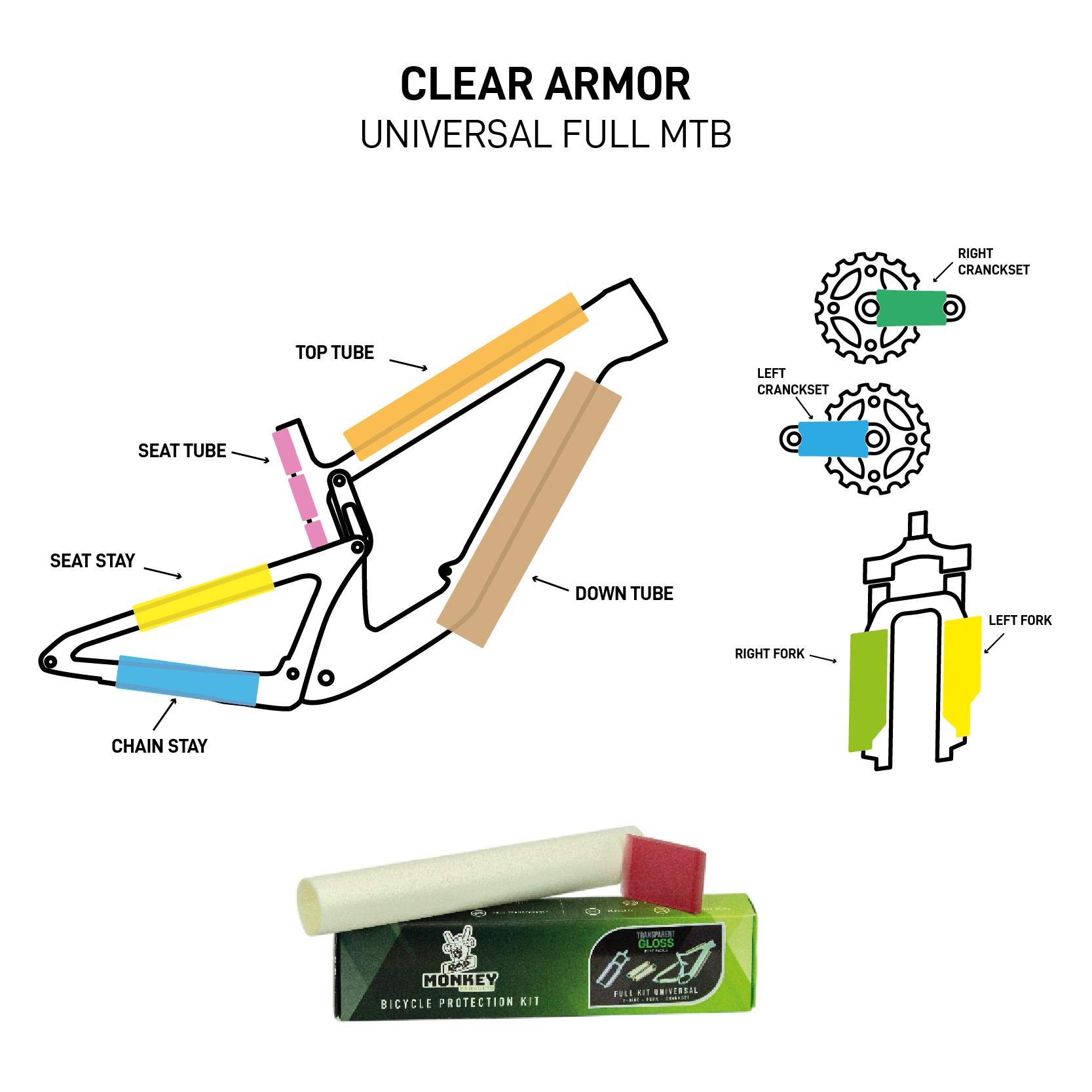 Kit qui s’adapte parfaitement aux formes de votre vélo et qui protégera 95% de votre cadre.