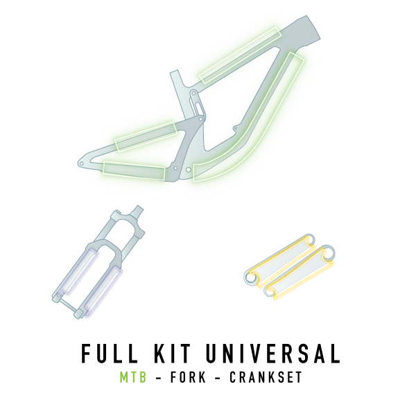Le kit Full Cover est idéal pour les passionnés de VTT, de gravel ou de route qui souhaitent préserver l'apparence et la valeur de leur vélo, tout en roulant sereinement sur tous les terrains.