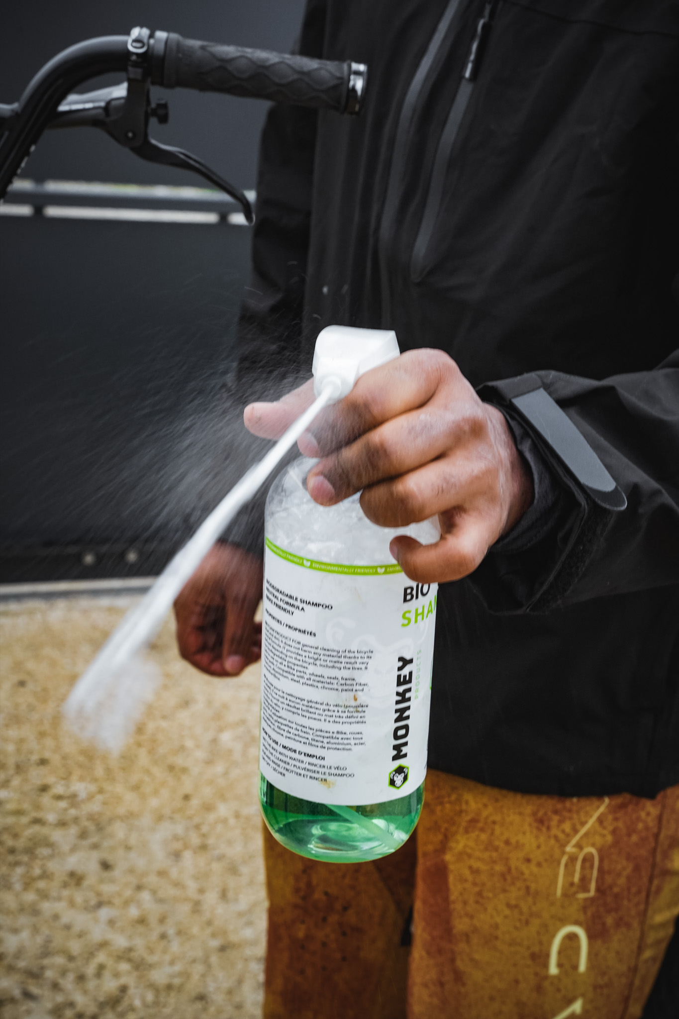 For best results with Monkey BIO Shampoo, we recommend the following leave the product to act for 1 to 2 minutes. After spraying the shampoo all over the bike, allow it to penetrate the dirt and residue. Then lightly rub the particularly dirty parts with a sponge or brush. Finally, rinse thoroughly with water to remove all product and dissolved dirt. This short but effective action time means you can maximize the cleansing power of shampoo while ensuring a fast and efficient washing process.